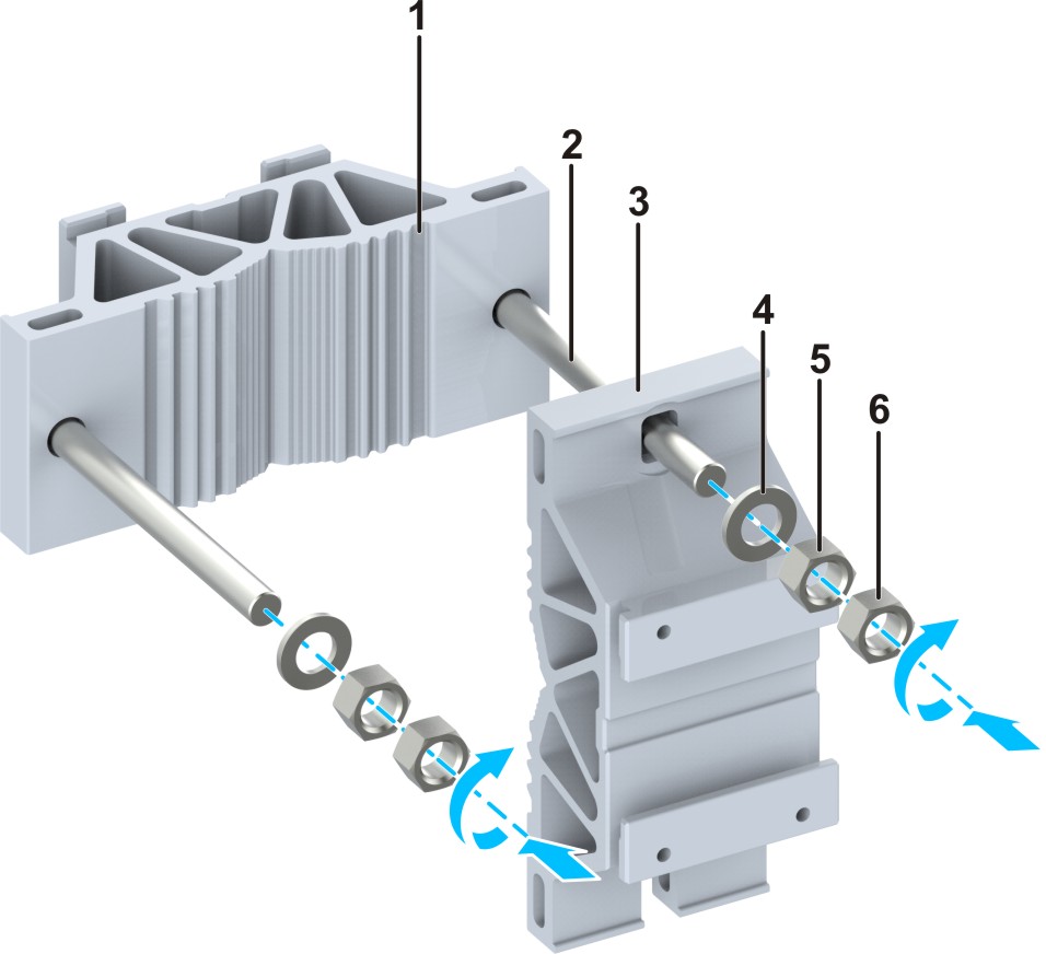 - 对齐螺钉安装孔,用4颗M6×20内六角螺钉将旗装支座与抱杆支架进行固定,紧固力矩4.8 N·m,如图6所示。