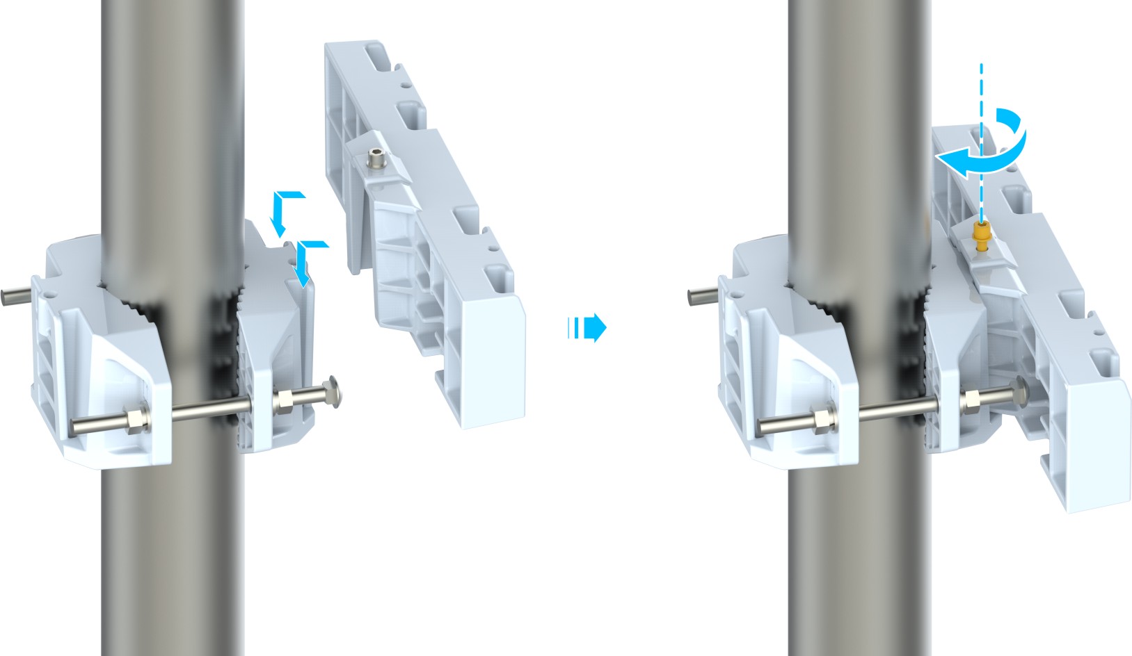 - 将第1个RRU挂装到抱杆组件上,如图8所示。